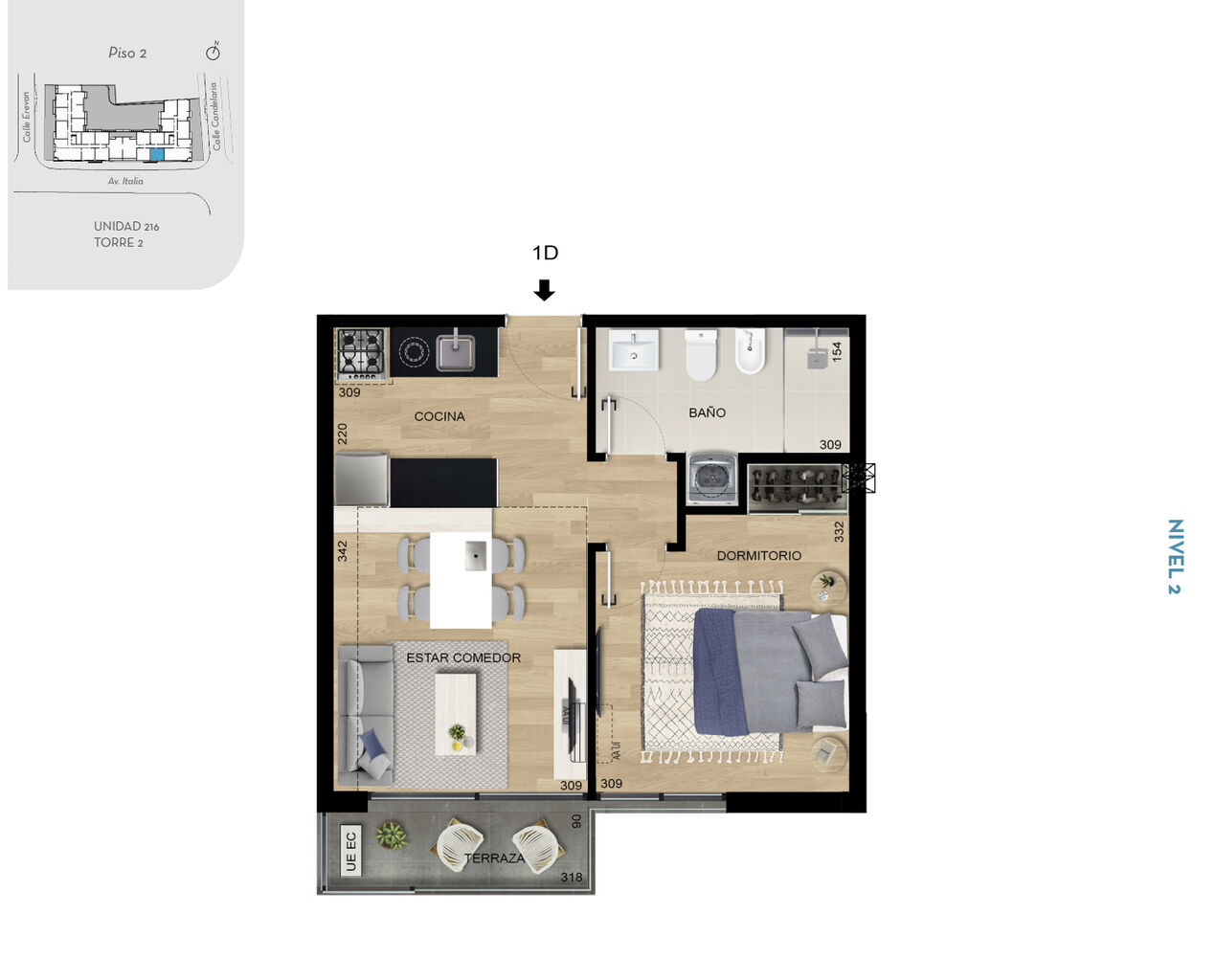 • Habitaciones1 Dormitorio