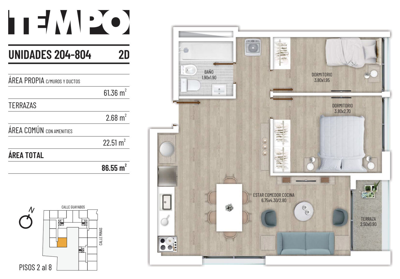 "Tempo" cambia el concepto de áreas comunes, elevándolo a un nuevo nivel con amenities de primera calidad. Consiste en 3 torres, 191 apartamentos en total con excelente calidad de construcción y terminaciones, 5 oficinas premium y 400 cocheras.