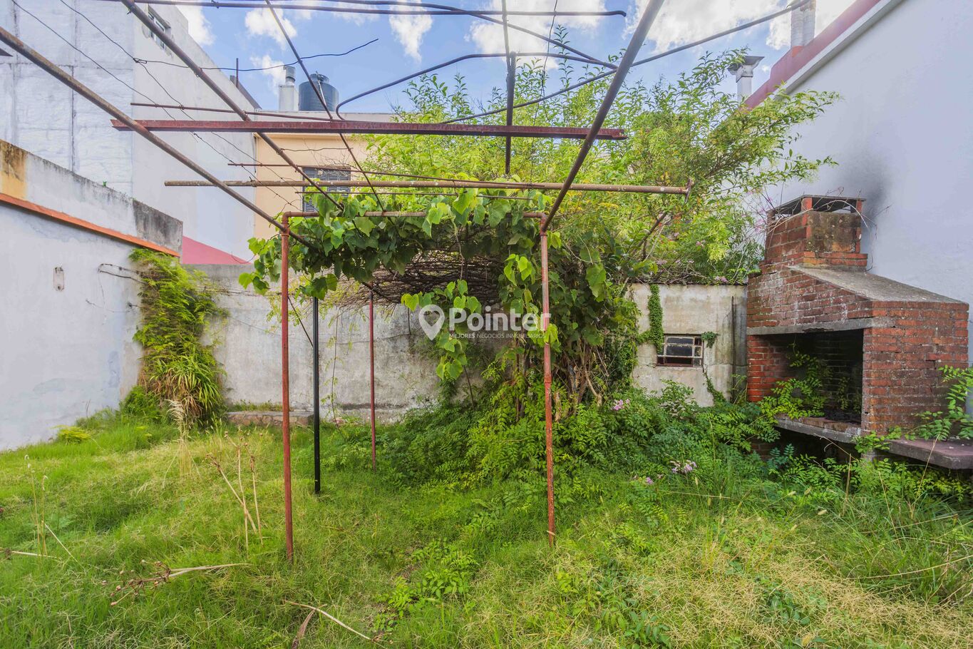 Gran patio al fondo con parrillero y construcción auxiliar